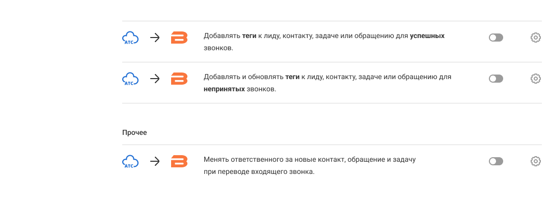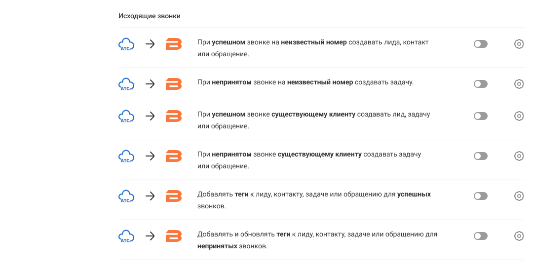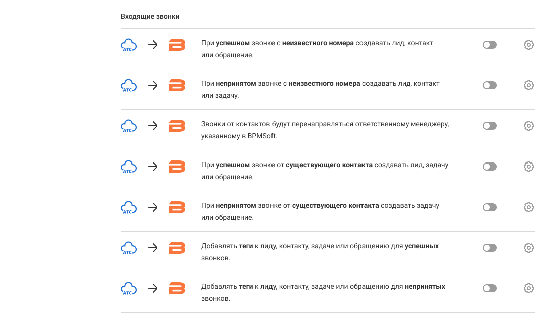 При этом для каждого типа звонка могут действовать свои правила интеграции.
