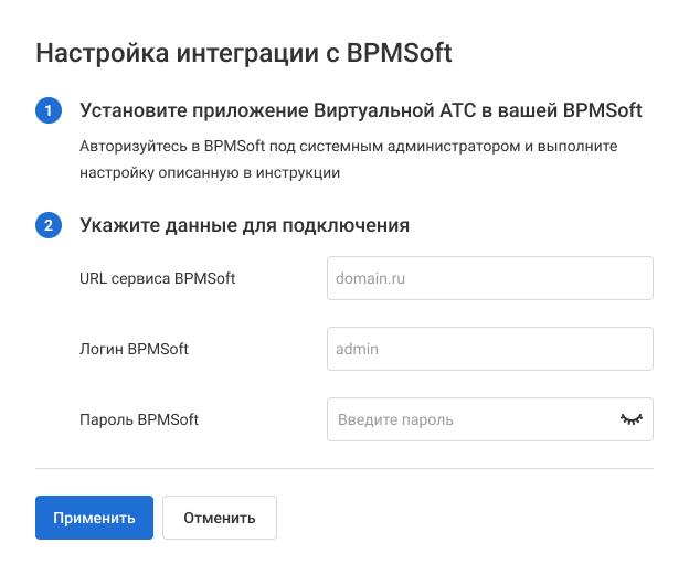 Настроить интеграцию могут только пользователи с правами администратора в АТС и правами системного пользователя в BPMSoft.