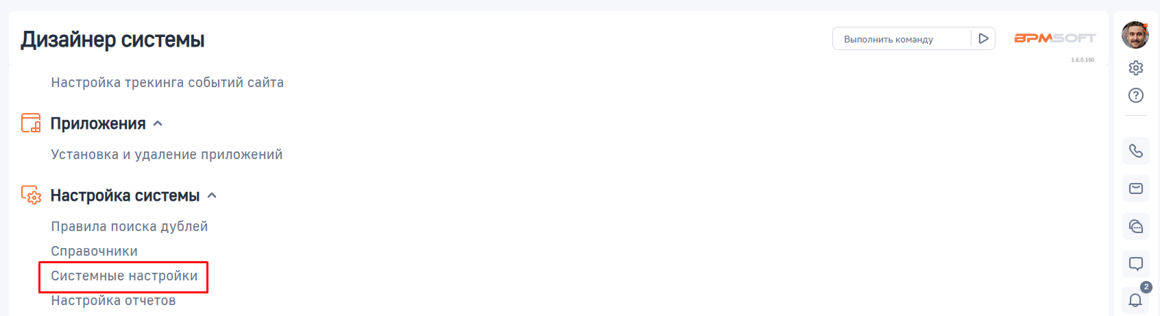 6. Вернитесь в «Дизайнер системы» и в разделе «Настройка системы» выберите пункт «Системные настройки».