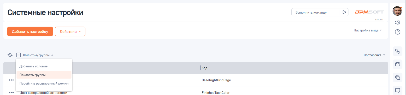 7. Нажмите на «Фильтр/группы» и выберите пункт «Показать группы».