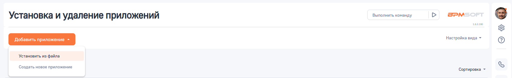 3. Нажмите на кнопку «Добавить приложение» и выберите пункт «Установить из файла» в выпадающем списке.