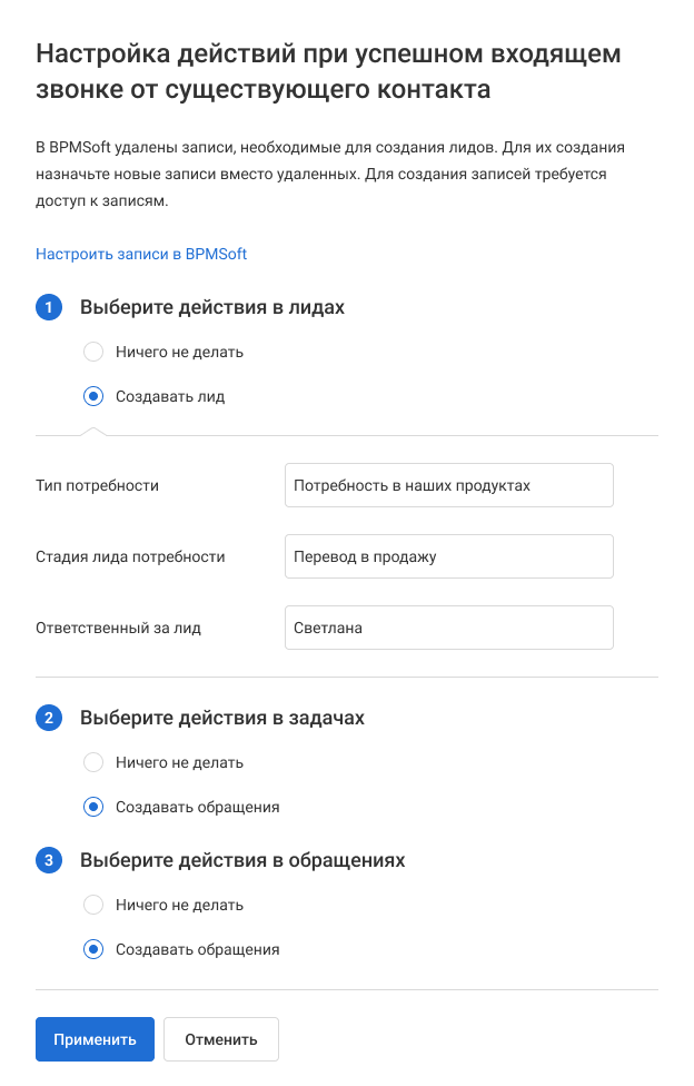 После настройки сценариев начинайте пользоваться интеграцией BPMSoft с АТС.
