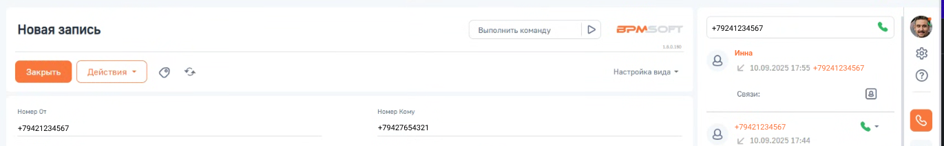 1. Работа с входящими звонками в интерфейсе BPMSoft