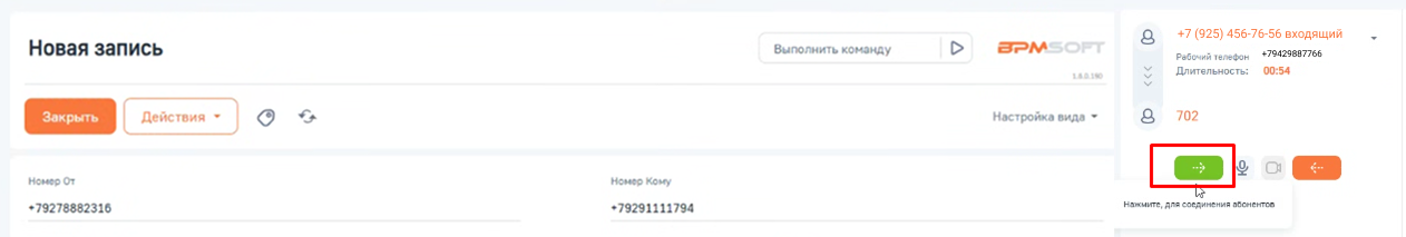 3. Перевод звонка в BPMSoft
