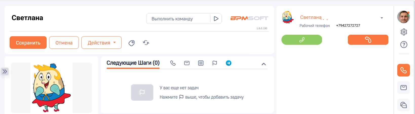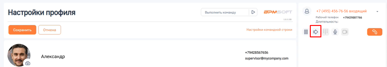 3. Нажмите на кнопку «Сохранить». Теперь вы можете совершать, принимать и переводить звонки в интерфейсе BPMSoft.