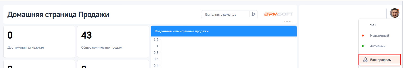 1. Нажмите на фото профиля в BPMSoft и выберите «Ваш профиль«.