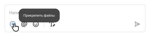 Чтобы отправить файлы, перетащите их в поле ввода сообщения или нажмите на кнопку «+». К сообщению в чате можно прикреплять вложения весом до 10 мегабайт. К каждому сообщению можно прикрепить до 10 вложений.