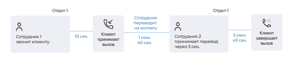2. Сотрудник 1 перевел вызов на сотрудника 2 внутри отдела.