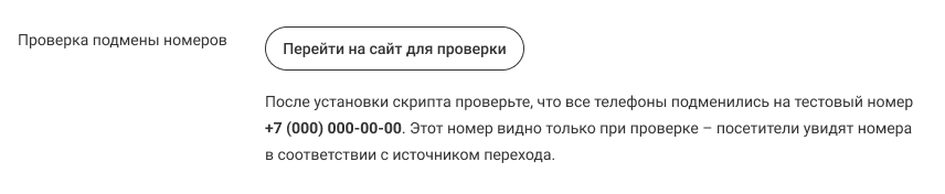 Также перед запуском кампании вы можете проверить подмену номеров на сайте вручную.Для этого перейдите в настройки нужной рекламной кампании и нажмите на кнопку «Перейти на сайт для проверки», расположенную под блоком со скриптом. Вы перейдете на сайт, указанный в рекламной кампании.